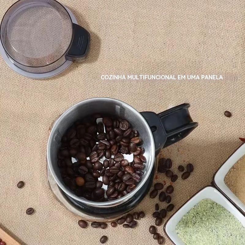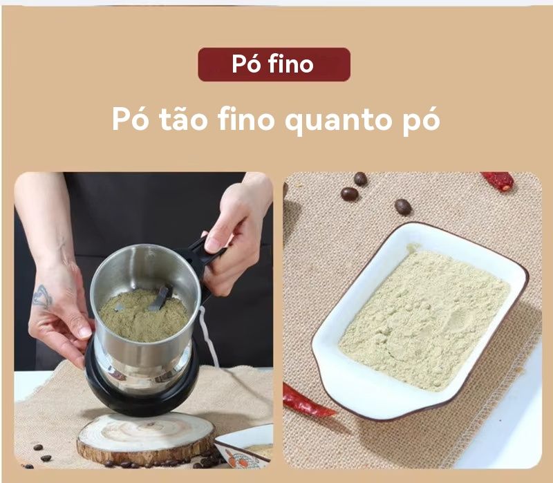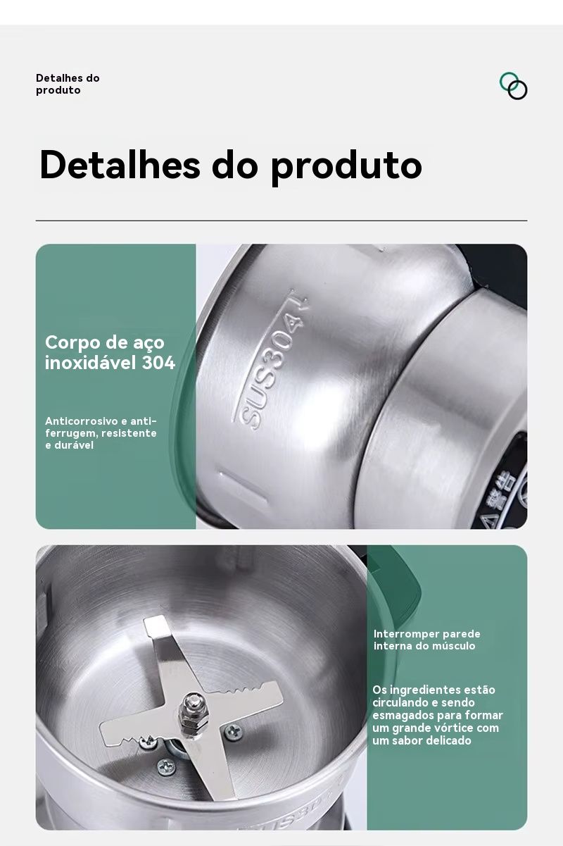 Por que você precisa dele? ✅ Material Premium: Feito com Aço Inox SUS316 de grau alimentício, super durável e higiênico. ✅ Não é só Café: Triture grãos, pimentas, nozes e especiarias em segundos! Olha a potência! 💪 ✅ Design Inteligente: Possui uma alça ergonômica que facilita o manuseio e evita que escorregue. ✅ Rápido e Eficiente: Moagem fina ou grossa, você decide o ponto ideal com um toque.