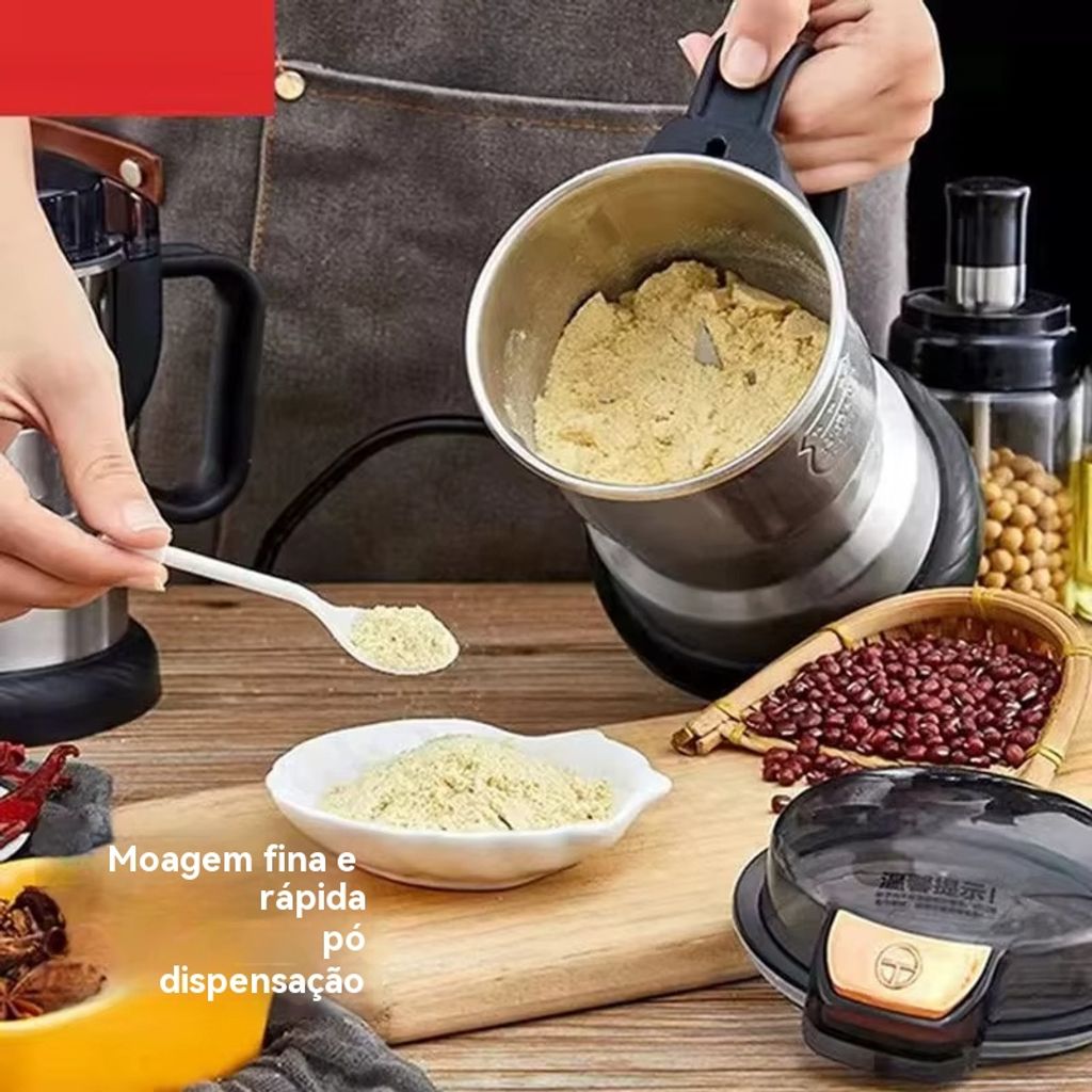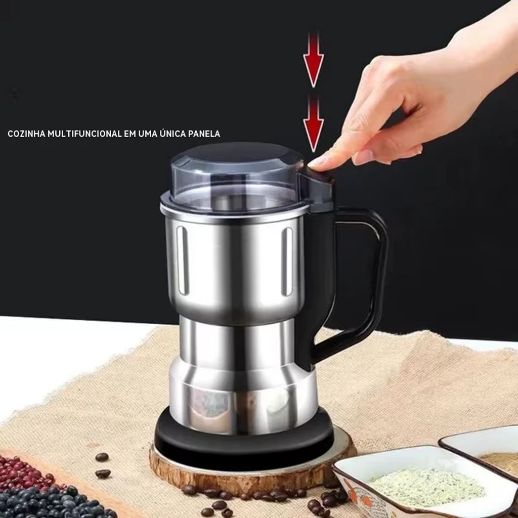 Apresentamos o Moedor Elétrico Multifuncional em Aço Inox. Robustez e precisão para a sua cozinha.