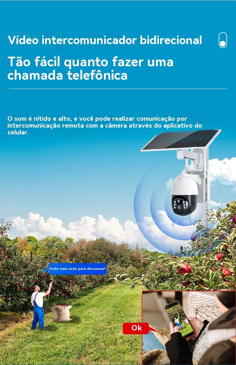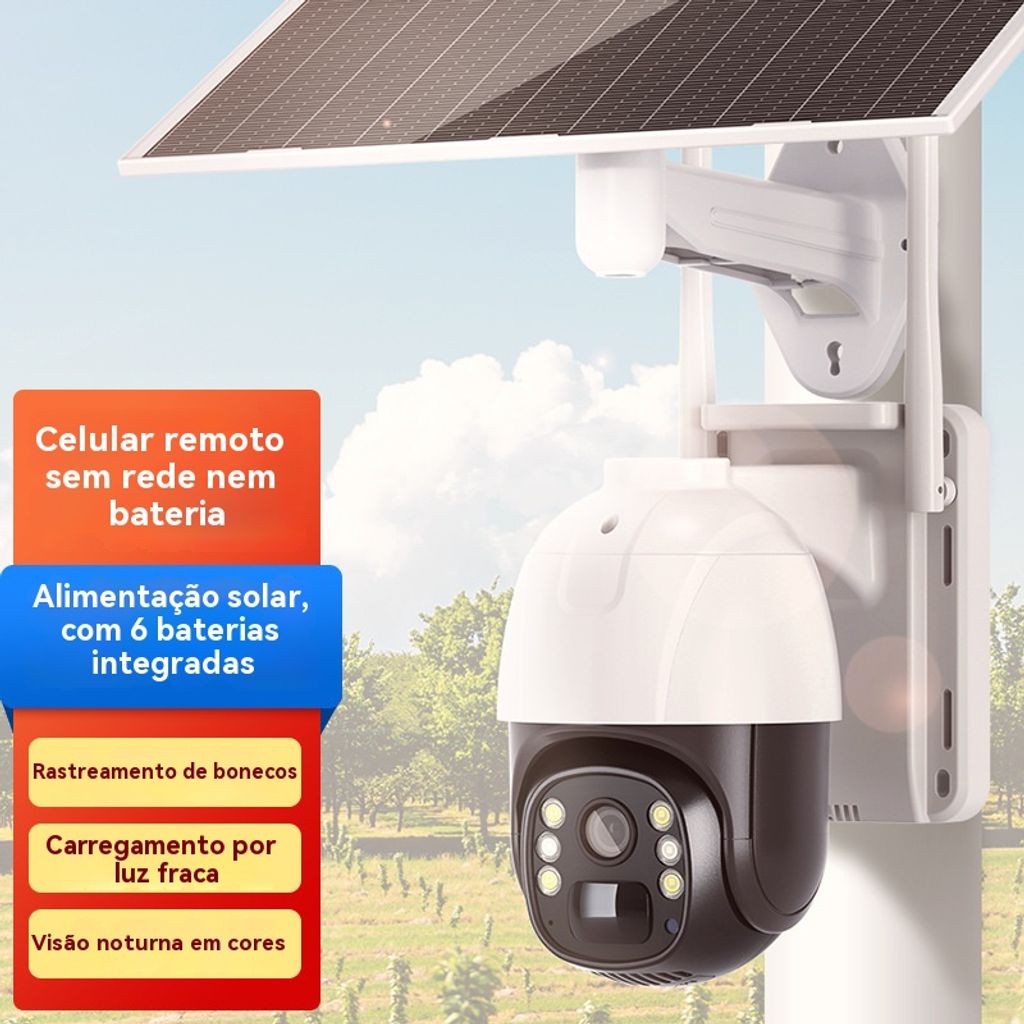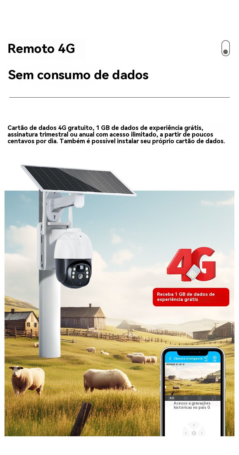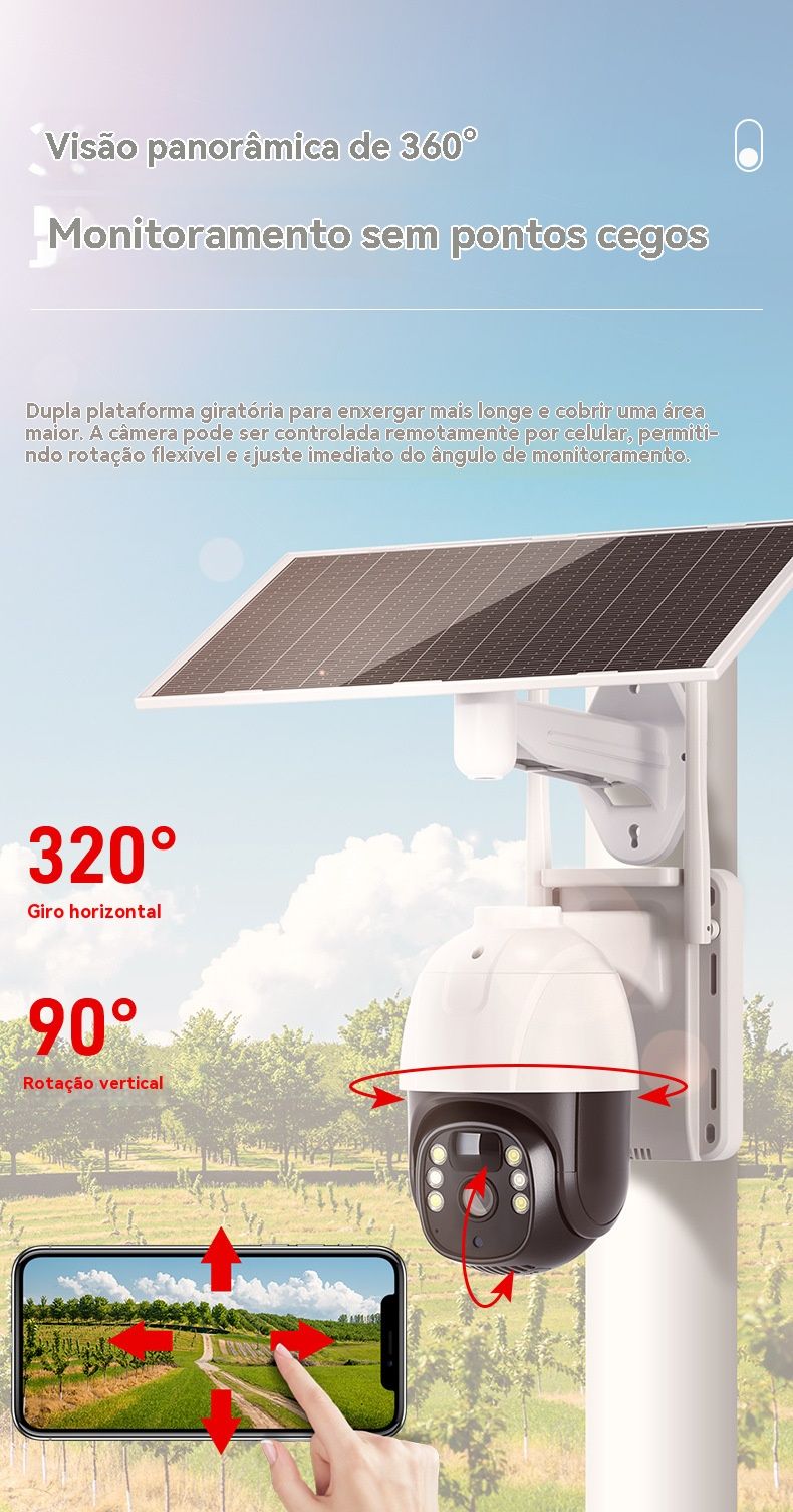 Câmera de Segurança Solar sem Recarga - HD, Baixo Consumo, Monitoramento Remoto via Celular para Casa e Exterior