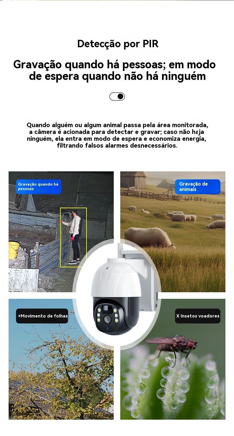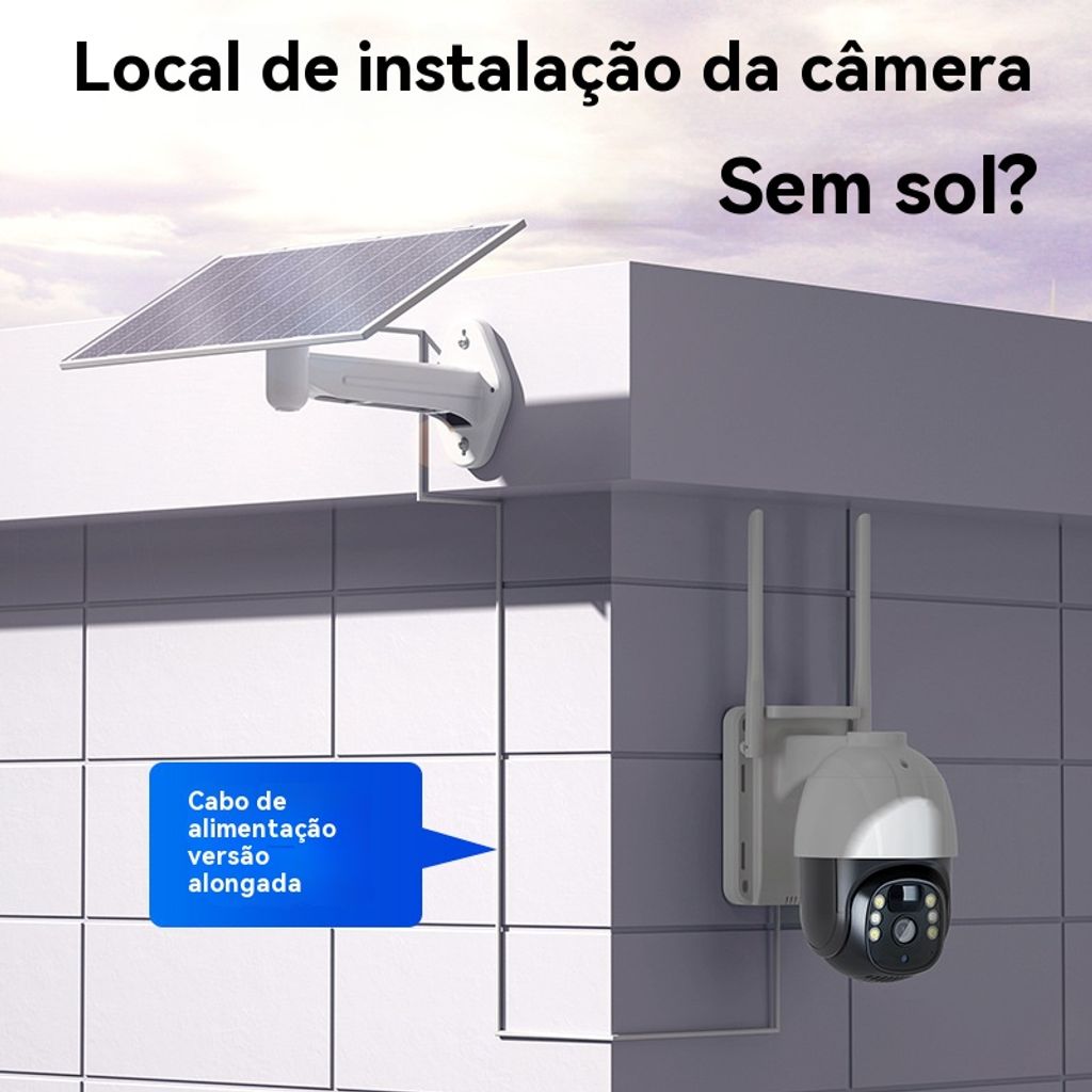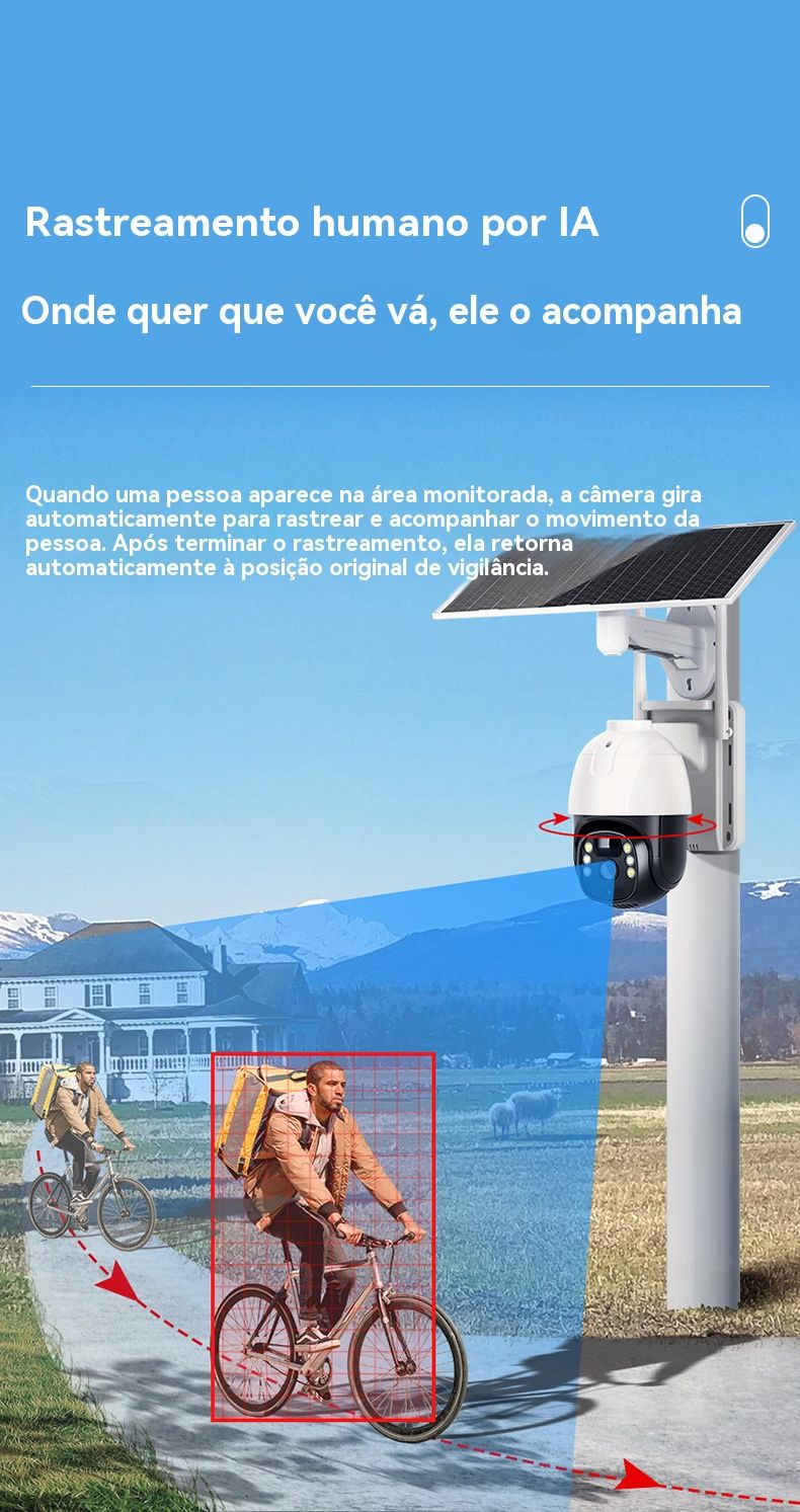 Câmera de Segurança Solar sem Recarga - HD, Baixo Consumo, Monitoramento Remoto via Celular para Casa e Exterior