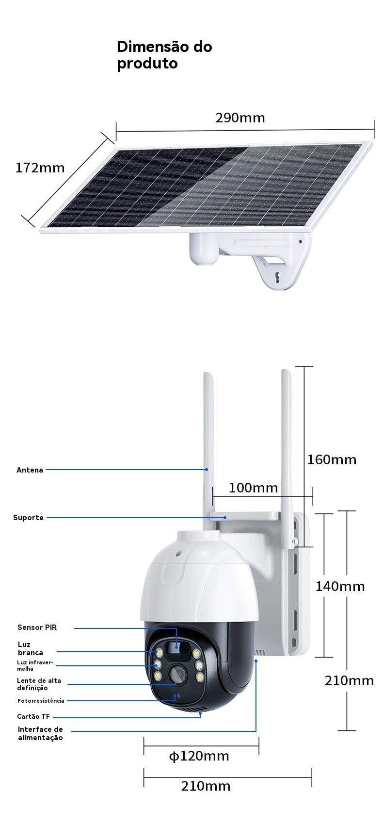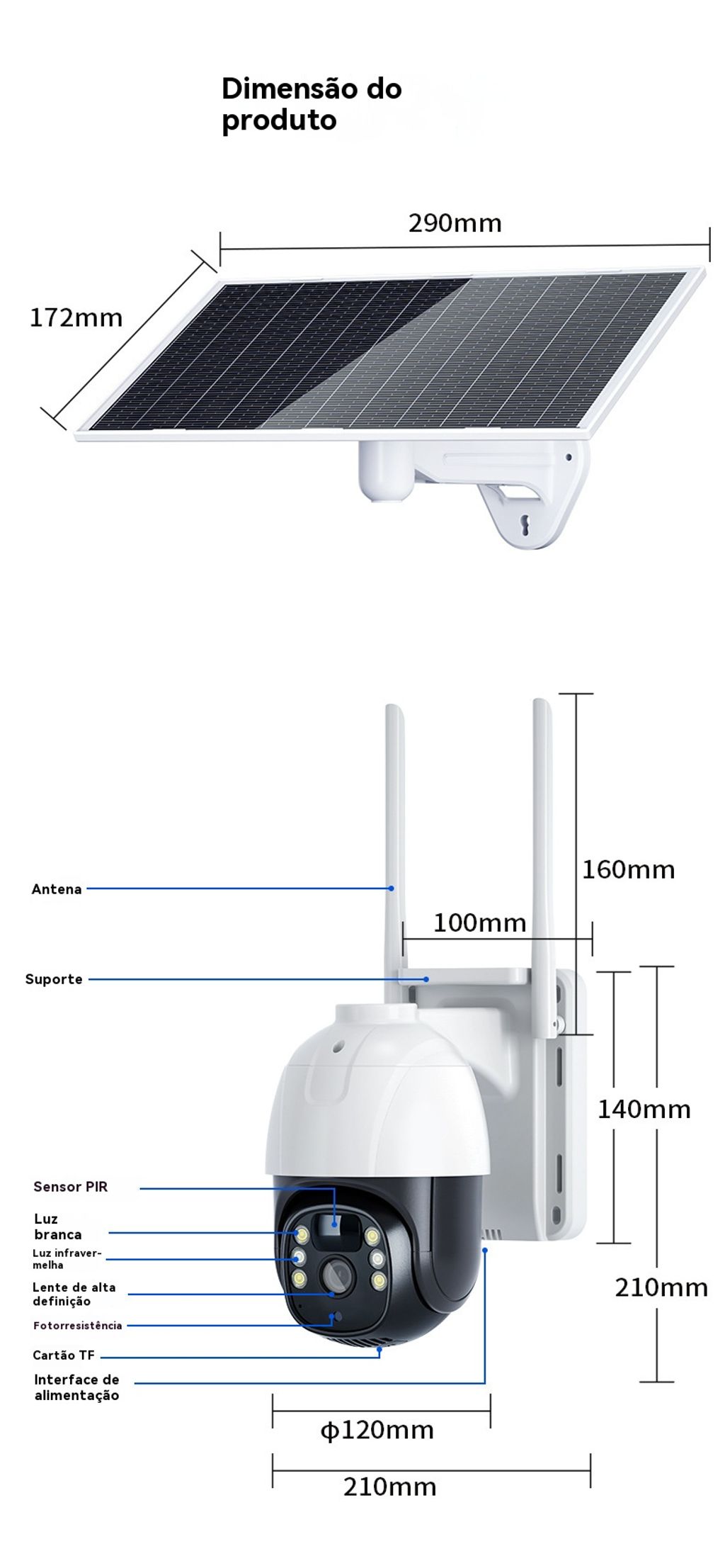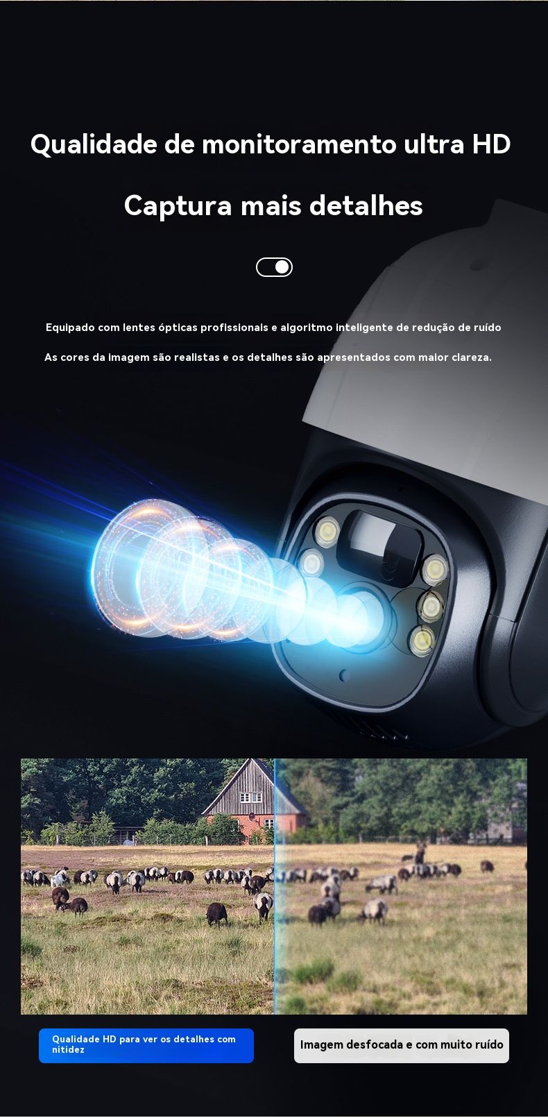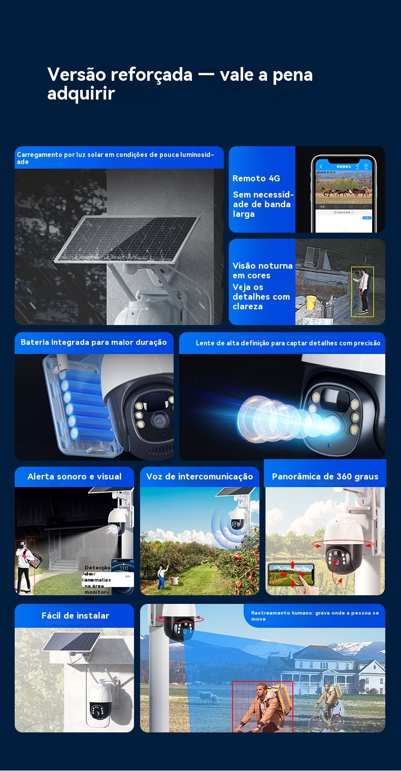 Câmera de Segurança Solar sem Recarga - HD, Baixo Consumo, Monitoramento Remoto via Celular para Casa e Exterior